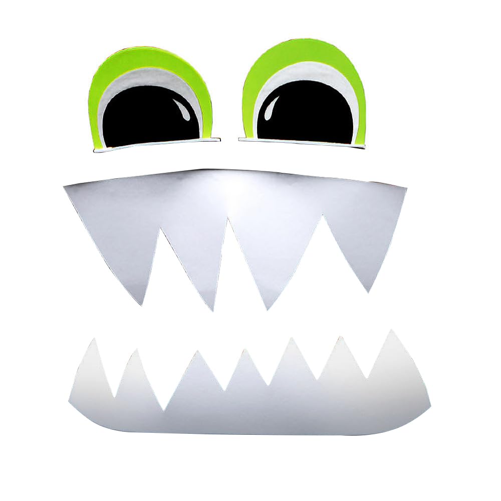 - Halloween themed decorative piece that turns any trunk into a gaping mouth lined with terrifying teeth and comes in four pieces, including two rows of teeth and two separate eyes.