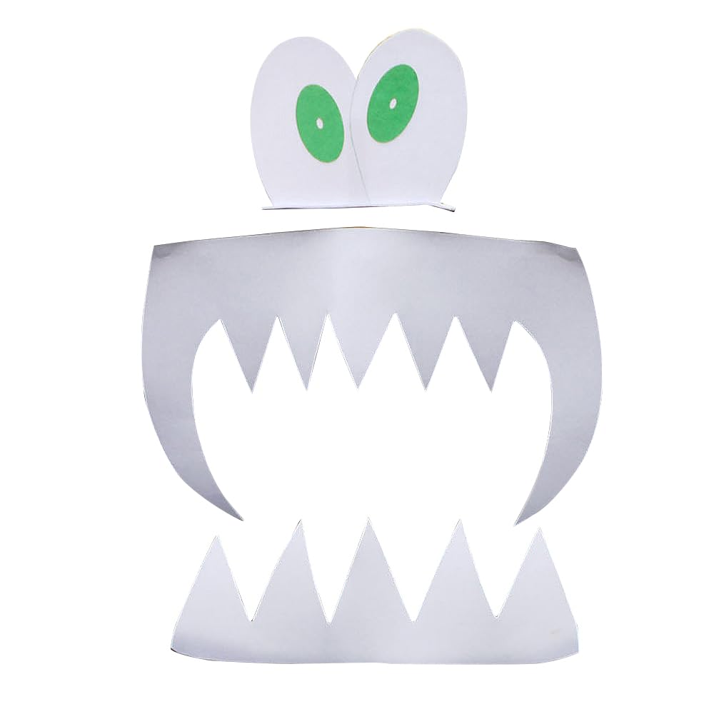 - The eyes measure 18 inches in height and 14 inches in width. The top teeth are 39 inches wide and 23 inches in height. The bottom teeth are 32 inches in width and 14 inches in height.