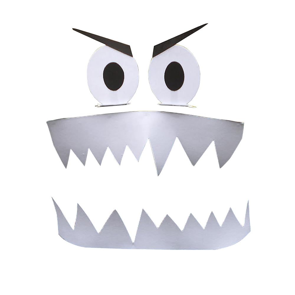 - Halloween themed decorative piece that turns any trunk into a gaping mouth lined with terrifying teeth and comes in four pieces, including two rows of teeth and two separate eyes.